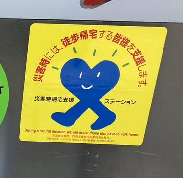 These events pushed konbini from being merely “crime refuges” to becoming all-purpose community safety hubs — which is why you now often see SOS signs, AED notices, and disaster information displayed together.