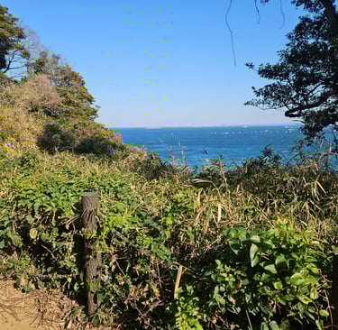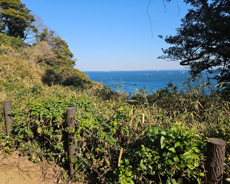 The ferry ride takes barely ten minutes — just long enough to feel separated from the mainland, but not long enough to forget it. Yokosuka — orderly, modern, naval-gray — slips behind you, and suddenly you are stepping onto something much quieter.