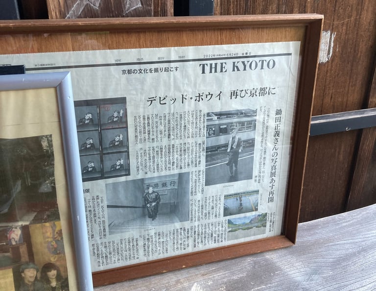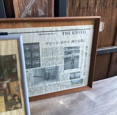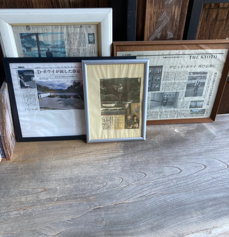 The blood ceiling, the Zen garden, and the deep stillness of the temple form a quiet tension—a yin and yang. Bowie’s smiling face looks out from old clippings as you breathe in the mountain air and the silence settles around you.