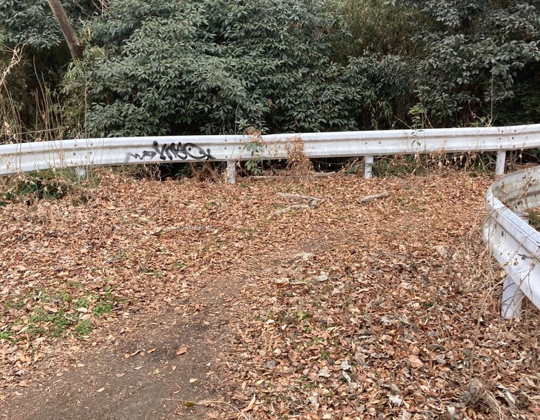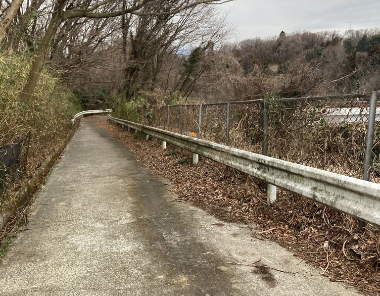 Dōryōdō (道了堂) is a temple hall tucked into the wooded hills west of Hachiōji, just off the long ridgeline connecting Takao and Jinba. What remains can be reached either by climbing a second set of stairs or by following a wide dirt path that curves gently around the property. At the top, the ruins appear gradually—stone foundations, lantern bases, and steps leading upward to nothing at all.