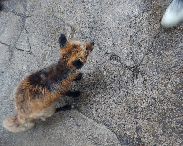 In Shinto tradition, foxes are sacred messengers of the Inari deity — spirits of rice, fertility, and prosperity. Watching them disappear into the trees felt like seeing that mythology made real.