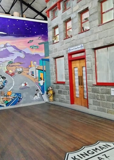 By 7:30 AM, we were packed and heading out to get to the forest by 8:00AM. Much to our chagrin, the park didn’t open until 9:00AM. Knowing our time is valuable we decided to forego the park for the next trip, and continued west. Not too far, at least by driving standards, we drove through Williams, and thought we would find a small restaurant or diner for a quick bite to eat. Much to our surprise Williams, AZ was quite crowded with tourists by 11AM. We stopped at the gas station toward the western side of town, snacked quickly with our own rations and headed to Kingman, AZ.