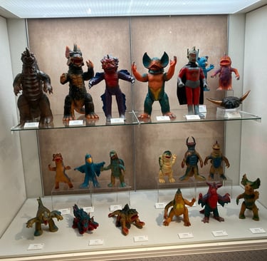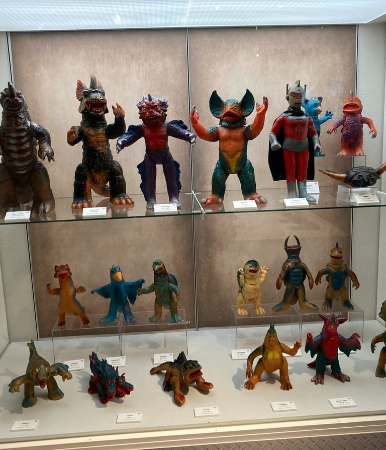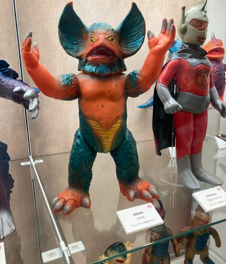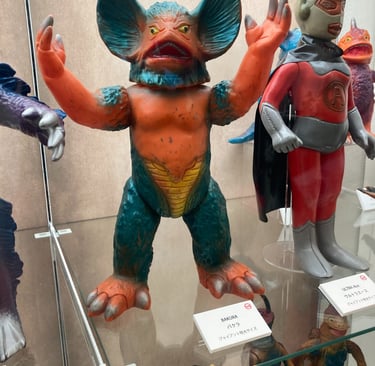 Their toys resemble many of the monsters from Toei and Toho Studio films of the same period — the Shōwa era. They have their versions of Godzilla, Mothra, and Ultraman: familiar shapes, slightly different names, mostly for legal reasons.