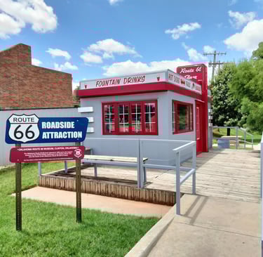 Mary asked if Clinton had a Wikipedia page — she’s the researcher of the pair — and sure enough, it did. We learned the town straddles Custer and Washita Counties, named for Judge Clinton Irwin, and grew up around the railroads in the early 1900s. By the 1930s, it was already a key stop on Historic Route 66.
