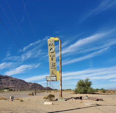 The weather was perfect, the truck ran smooth, and the road stretched out in that endless California way. Somewhere east of Barstow, we started talking about pushing a little farther—maybe past Needles to Kingman, Arizona, just an hour more. And then maybe even to Williams, outside of Flagstaff. Spirits were high, and the desert felt open to possibility.