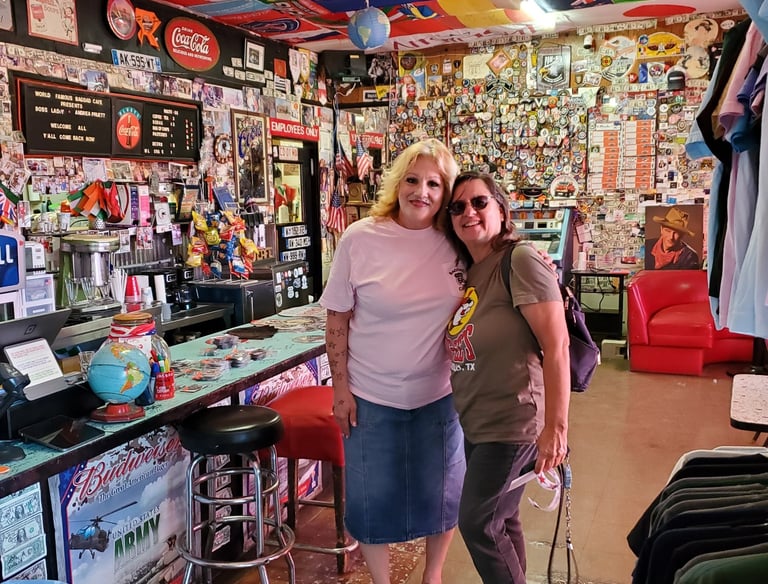 Today, the Bagdad Café feels part museum, part memory. Since the pandemic, it no longer serves food, but you’ll find T-shirts, stickers, and stories waiting inside.
