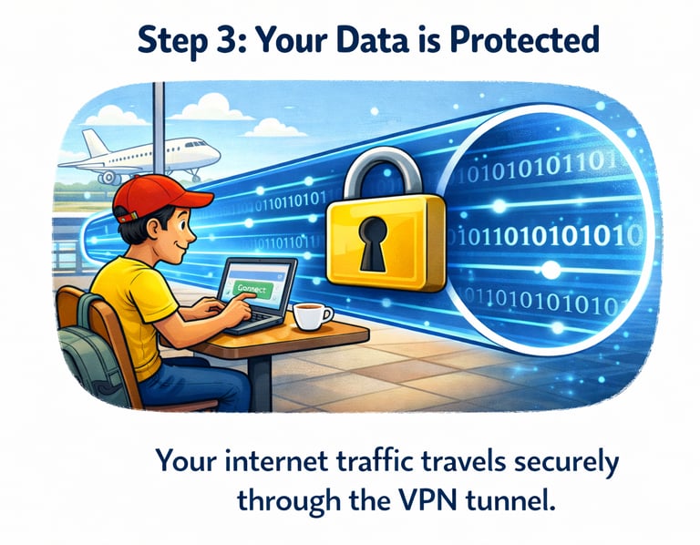 For those new to it, a VPN — or Virtual Private Network — works like a protected corridor around your internet connection. Instead of your data traveling out in the open, it moves through a private tunnel to another location. When you use a VPN, your internet traffic is encrypted — essentially locked inside a secure passage — so no one on the same Wi-Fi network can easily see what you’re doing. Whether it’s banking information or photos of you sipping a mai tai on the beach, your data is wrapped in mathematical encryption.