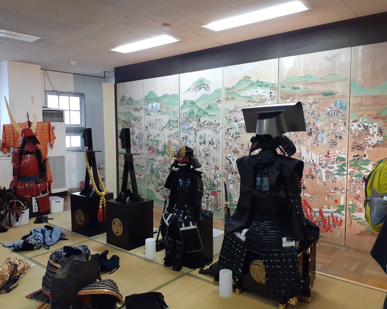 In a side room, local volunteers were preparing for a festival. They smiled and waved us over, letting my son try on samurai armor. He was delighted to wear the armor of Tokugawa’s army — the heavy helmet, breastplate, and shoulder guards. The museum volunteers seemed equally pleased that a wanderer from another land could be made so happy beneath the shield of Tokugawa’s forces. It was a neat moment — the kind that bridges cultures.